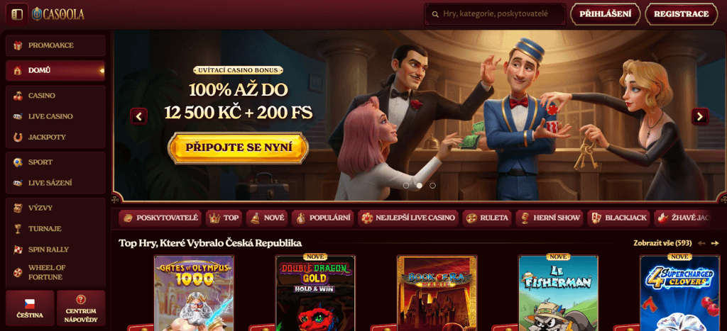 Při první návštěvě Casoola Casino mě okamžitě zaujal elegantní a tmavý design, který působí velmi moderně. Platforma skvěle kombinuje kasinové hry a sportovní sázky, což z ní dělá komplexní centrum zábavy. Navigace je intuitivní, s jasně oddělenými sekcemi pro Casino, Live Casino, Sporty a Turnaje, které jsou snadno dostupné z bočního panelu. Herní knihovna je skutečně rozsáhlá a nabízí vše od nejnovějších video automatů až po klasické stolní hry. Obzvláště mě potěšila sekce živého kasina, která obsahuje mnoho variant rulety, blackjacku a populárních herních show.